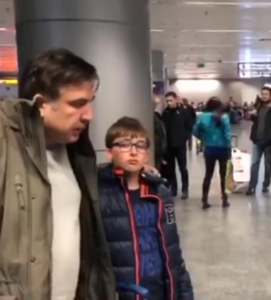 “ახლა აქ შემთხვევით ვიმყოფები. დღეს ქალაქიდან გასული ვიყავი. მაინტერესებს, რომ გამოიყვანეთ ბავშვი, სად მიგყავდათ? ადამიანი, რომელიც მას ახლდა ოფიციალური დაცვის წარმომადგენელია. რატომ გამოიყვანეთ ბავშვი, როდესაც აქ მას არავინ არ უნდა დახვედროდა. ის ბარგი კი არ არის, არასრულწლოვანია. რა უფლება გქონდათ, რომ ასე გამოგეყვანათ. მე არ გადმომიცია თქვენთვის უფლებამოსილება, რომ ჩემი შვილი თქვენ გყოლოდათ,”- აცხადებს მიხეილ სააკაშვილი უკრაინის ავიაკომპანიის თანამშრომელთან საუბრსას.
