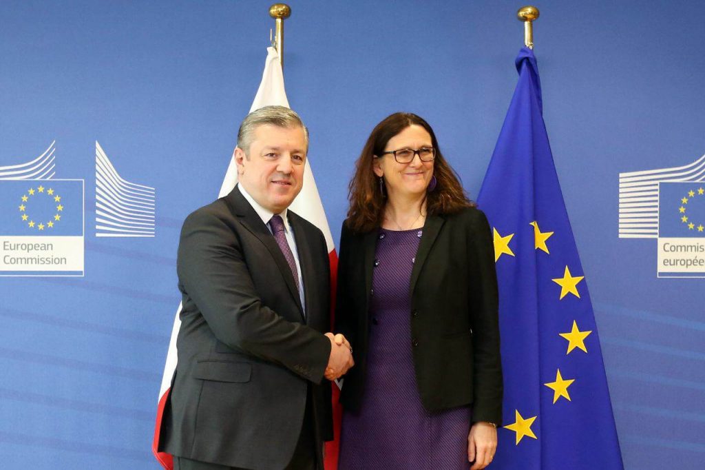 პრემიერ-მინისტრმა და ევროკომისარმა შეხვედრისას ასევე ისაუბრეს საქართველო-ევროკავშირის სავაჭრო-ეკონომიკურ ურთიერთობებზე, ღრმა და ყოვლისმომცველი თავისუფალი სავაჭრო სივრცის შესახებ შეთანხმებით გათვალისწინებული შესაძლებლობების გამოყენებაზე და ხაზი გაუსვეს ამ მიმართულებით არსებულ პროგრესს. განსაკუთრებით აღინიშნა საქართველოსა და ევროკავშირს შორის არსებული მზარდი სავაჭრო დინამიკა – კერძოდ, ის ფაქტი, რომ 2017 წლის განმავლობაში, საქართველოდან ევროკავშირის ქვეყნებში ექსპორტი 13%-ით გაიზარდა და ჯამში 647 მილიონი დოლარი შეადგინა.
