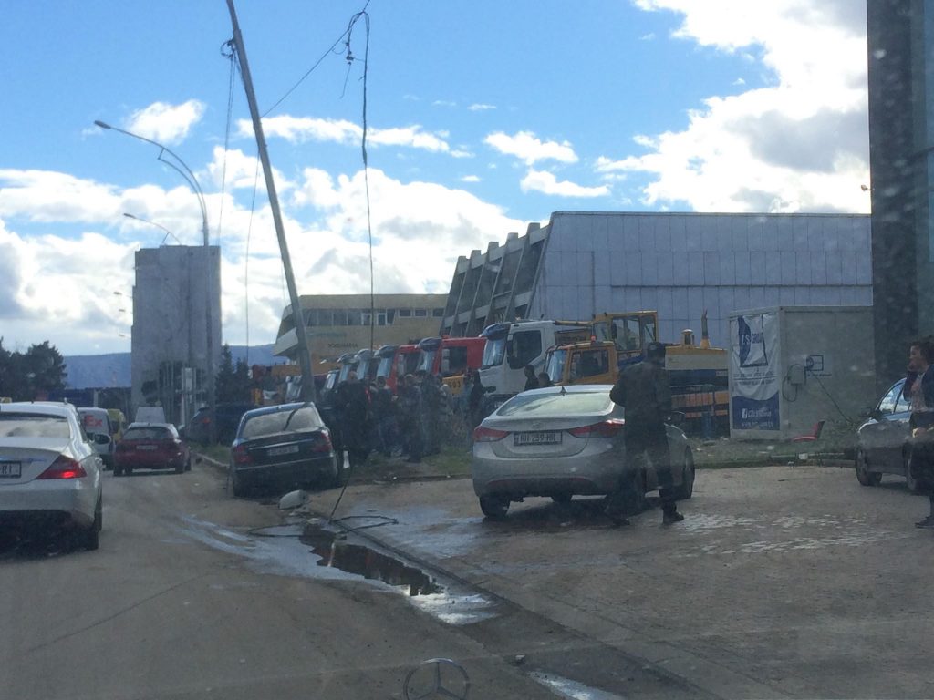 დარტყმის შედეგად, ერთ-ერთი გაჩერებული ავტომობილი, რომელშიც ორი ადამიანი იმყოფებოდა, ელექტროგანათების ბოძს შეეჯახა.