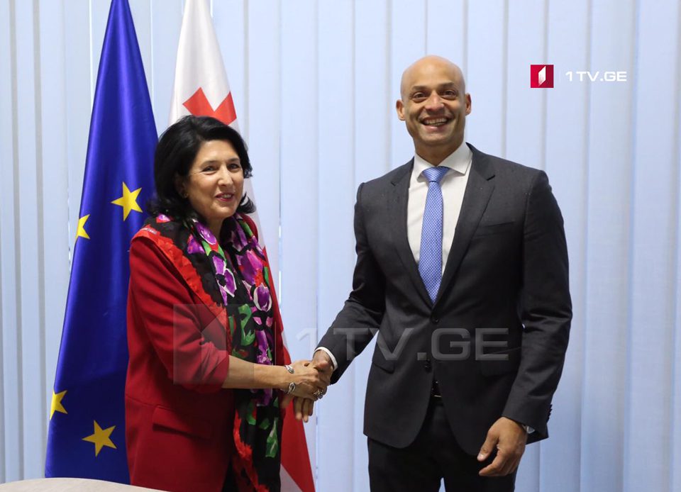 სამხრეთ კავკასიისა და ცენტრალურ აზიაში ნატო-ს გენერალური მდივნის სპეციალური წარმომადგენელი ჯეიმს აპატურაი საქართველოს არჩეულ პრეზიდენტს, სალომე ზურაბიშვილს ხვდება.