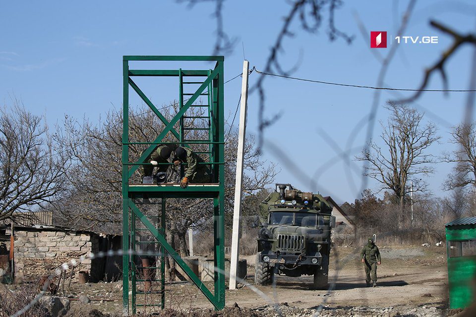 რუსმა ოკუპანტებმა მძიმე ტექნიკის საშუალებით მიიტანეს ჯიხური, რომელიც რკინის კონსტრუქციის სათვალთვალო კოშკურაზე განათავსეს.