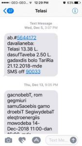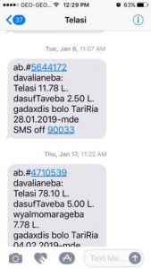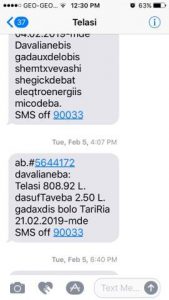 მან „თელასისგან“ მიღებული შეტყობინებაც გამოგვიგზავნა, რომელიც ასახავს იანვრისა და წინა თვეების დავალიანებებს შორის კონტრასტს.