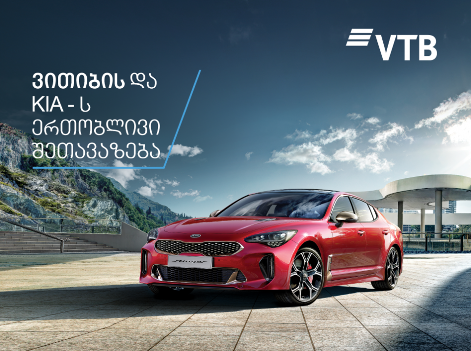 ვითიბი ბანკი, კიას მარკის ნებისმიერი მოდელის, ავტო სესხით შეძენის მსურველებს სთავაზობს სპეციალურ სასაჩუქრე პაკეტს, რომელიც მოიცავს: უფასო სერვისს 1 წლის განმავლობაში, 6 თვიან დაზღვევას, 15 თეთრიან ფასდაკლებას საწვავზე, ნასვამი მძღოლის მომსახურებას, ტექნიკურ დახმარებს გზებზე და ავტომობილის გადაფორმებას.