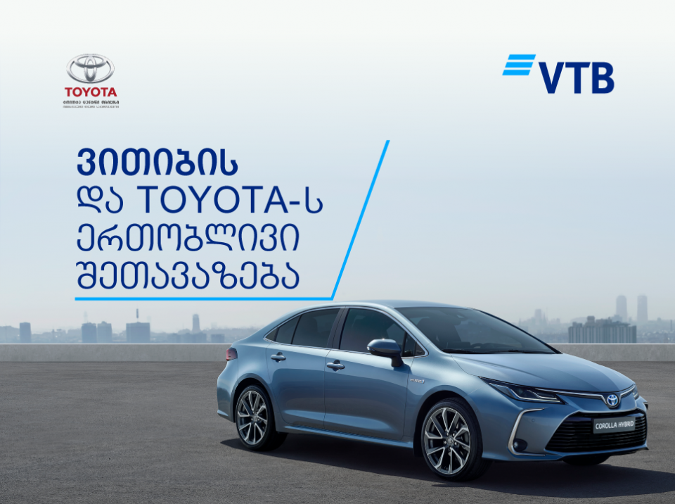 ვითიბი ბანკი და ტოიოტას მარკის ნებისმიერი მოდელის, ავტო სესხით შეძენის მსურველებს სთავაზობს სპეციალურ სასაჩუქრე პაკეტს, რომელიც მოიცავს: უფასო სერვისს 3 წლის განმავლობაში, 6 თვიან დაზღვევას, 15 თეთრიან ფასდაკლებას საწვავზე, ნასვამი მძღოლის მომსახურებას, ტექნიკურ დახმარებს გზებზე და ავტომობილის გადაფორმებას.