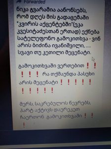 შეგახსენებთ, რომ ეკა ხერხეულიძემ სოციალურ ქსელში გააზიარა სმს-ის სქრინი, სადაც წერია, რომ ბათუმის მერიის თანამშრომლები “ტელეკომპანია “რუსთავი 2-ის” ინტერაქტივში უნდა ჩაერთონ და დააფიქსირონ, რომ ბიძინა ივანიშვილი არის კეთილი მეცენატი.