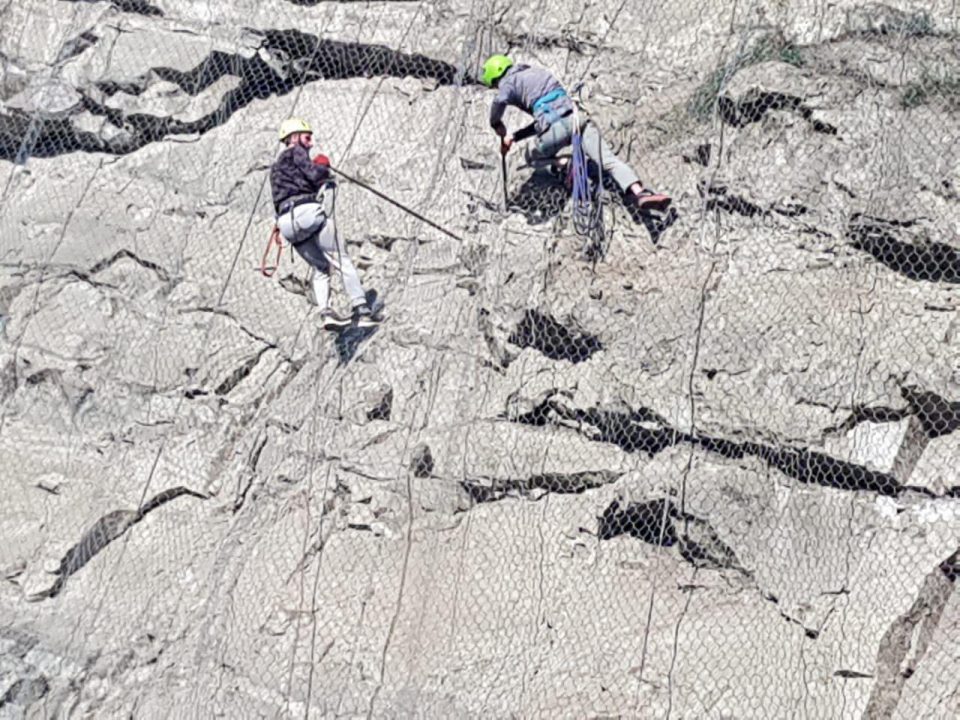 ჩამოშლილი ფერდის მცირე მასების გაწმენდაზე მთამსვლელები მუშაობენ. ქვათაცვენის მიზეზებს გარემოს ეროვნული სააგენტოს სპეციალისტები სწავლობენ.