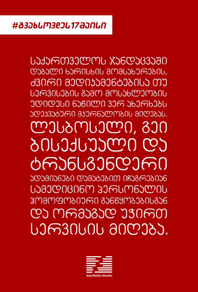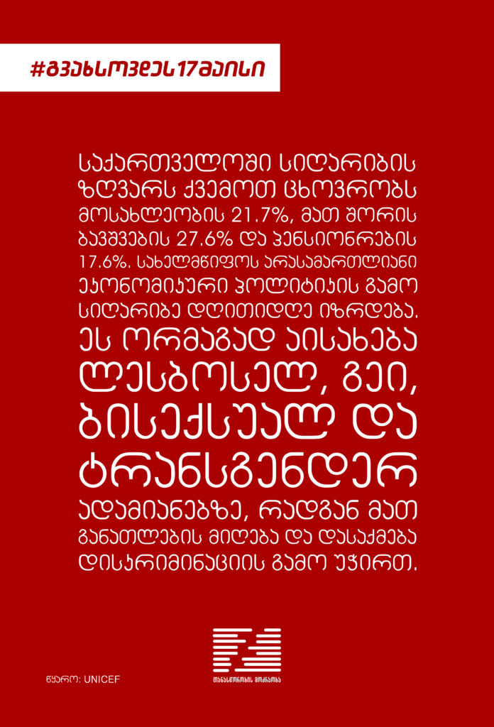2013 წლის შემდეგ “თანასწორობის მოძრაობა” ვერ მართავს აქციას ჰომოფობიისა და ტრანსფობიის საწინააღმდეგო დღის აღსანიშნავად. 2014 წელს საპატრიარქომ დააწესა ოჯახის სიწმინდის დღე, რომლის მსვლელობის მონაწილეები ფაქტობრივად იკავებენ საჯარო სივრცეს. 17 მაისის წინა პერიოდში ხშირდება თემის წევრების მიმართ დავდასხმები და ძალადობრივი მოწოდებები. ამის სანაცვლოდ, ორგანიზაციამ გადაწყვიტა, რომ ჰომოფობიისა და ტრანსფობიის საწინააღმდეგო დღე თბილისის მეტროპოლიტენის სამ სადგურსა და ავტობუსების სამ მოსაცდელზე სარეკლამო სივრცე იჯარით აეღო ერთი თვის განმავლობაში. ბანერებზე ჰომოფობიის საწინააღმდეგო და თანასწორობის შინაარსის მესიჯები განეთავსებინა.