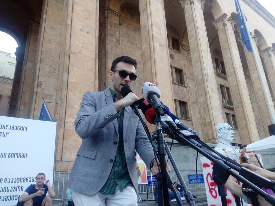 “ჩვენი აქცია არის ანტისაოკუპაციო, ვეუბნებით არას ოკუპაციას. ცხადია, ჩვენი საწინააღმდეგო აქცია ავტომატურად იქნება პროსაოკუპაციო. მე არ ვიცი, რა ინფორმაციები ვრცელდება, მაგრამ პარლამენტის წინ რჩებიან ჩვენი მეგობრები, მამაცი ადამიანები, თუმცა ეს ადმაიანები არიან ალყაში, აგრესიის ქვეშ და თუ პოლიცია არ შეასრულებს თავის მოვალეობას და არ დაიცავთ მათ, ჩვენთვის ცხადი გახდება, რეალურად ვის ემსახურებიან ისინი, შსს-ის პოლიციელები. ჩვენ ვიდგებთ აქ ბოლომდე, აწეული ხელებით”