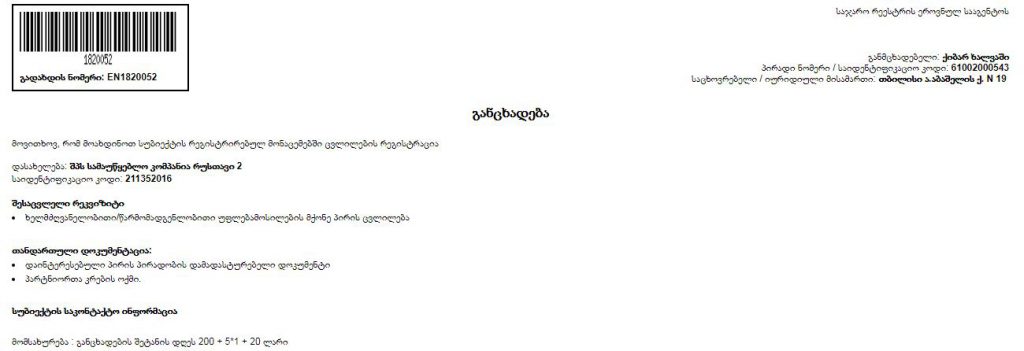 იუსტიციის სახლში ამ წუთებში ოფიციალურად დარეგისტრირდა ქიბარ ხალვაში როგორც “რუსთავი 2”-ის მესაკუთრე. დოკუმენტების მიხედვით, ის 60 პროცენტის მფლობელია, ხოლო შპს “პანორამა” – 40.