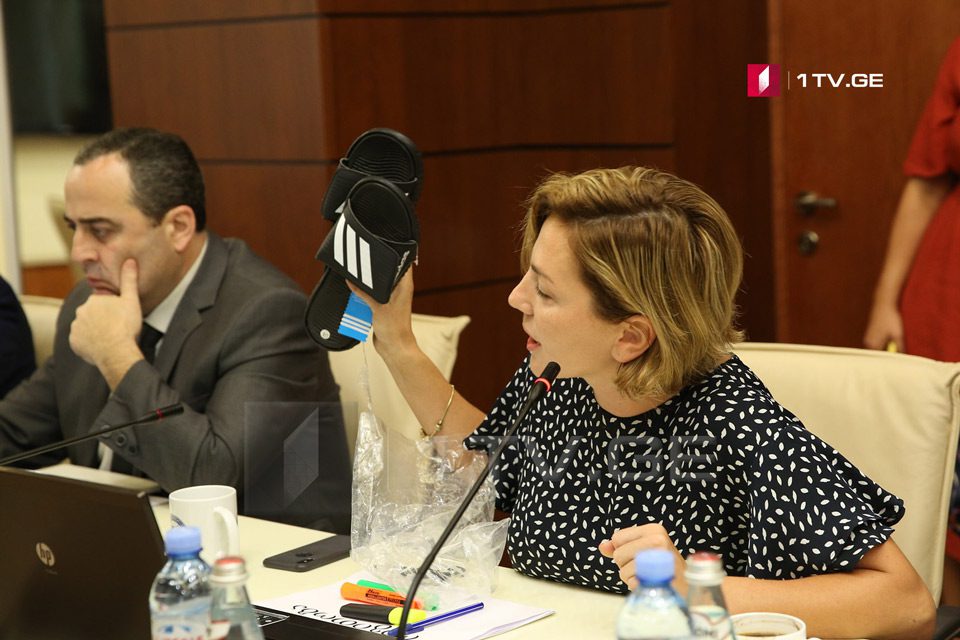 უზენაესი სასამართლოს მოსამართლეობის კანდიდატთან გასაუბრების დაწყებამდე საბჭოს არამოსამართლე წევრმა ანა დოლიძემ ჩუსტები მიიტანა.