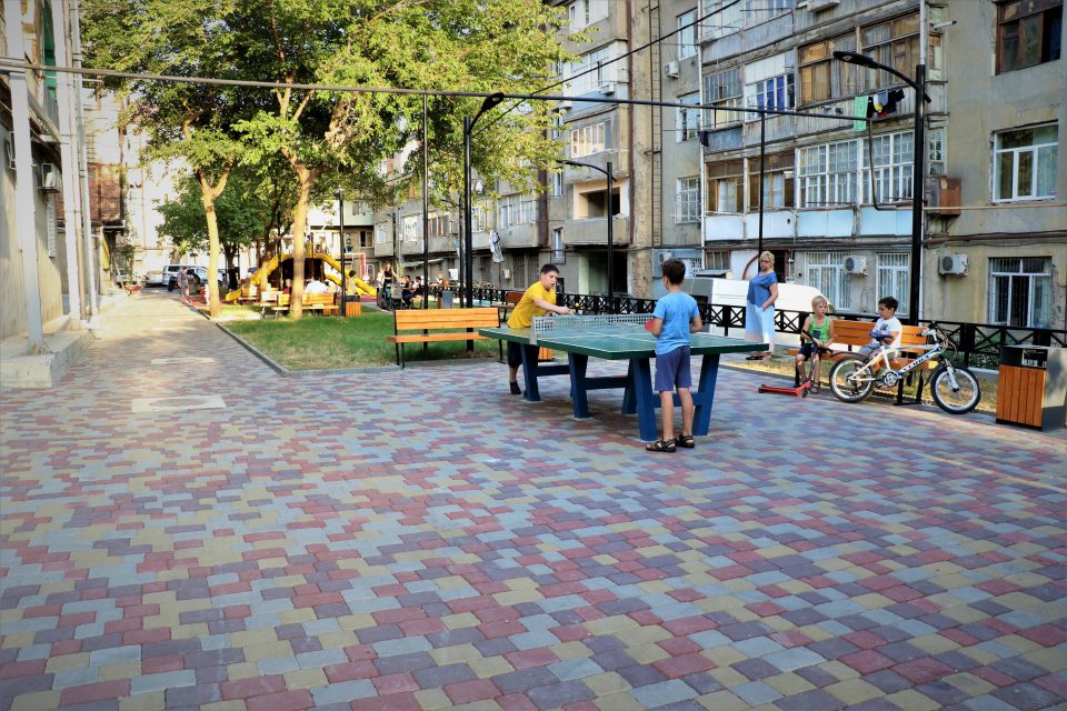 საცხოვრებელ კორპუსებს შორის არსებულ ტერიტორიაზე, ფერადი დეკორატიული ფილებით მოეწყო საფეხმავლო ბილიკები, დაიდგა დასასვენებელი საბაღე სკამები, სანაგვე ურნები, დამონტაჟდა სასმელი წყლის შადრევანი, დაიდგა ჩოგბურთის სათამაშო მაგიდა, ჩატარდა გამწვანების სამუშაოები, მოეწყო საბავშვო გასართობი სივრცე, სადაც დამონტაჟდა მრავალფეროვანი გასართობი ატრაქციონი ე. წ. „გემი“.
