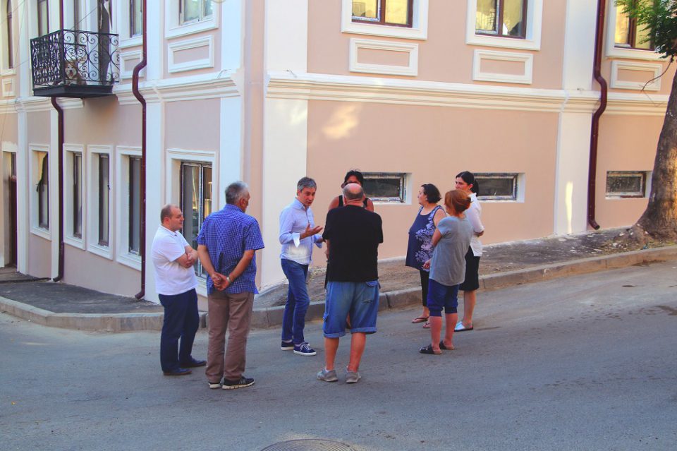 დასრულებული სამუშაოები ჩუღურეთის რაიონის გამგებელმა ზურაბ ჩიკვილაძემ, საკრებულოში მაჟორიტარ დეპუტატ რიმა ბერაძესთან ერთად დაათვალიერა და ადგილობრივ მოსახლეობას შეხვდა.