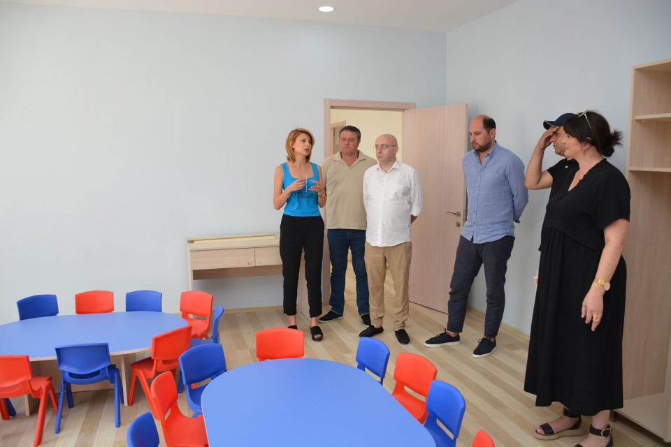 დასრულებული სამუშაოები თბილისის საბავშვო ბაგა-ბაღების მართვის სააგენტოს ხელმძღვანელმა კახაბერ გვანცელაძემ რაიონის გამგებელს, ირაკლი ხელაძესა და საკრებულოს კულტურისა და განათლების კომისიის თავმჯდომარეს, თამარ ტალიაშვილს გააცნო.