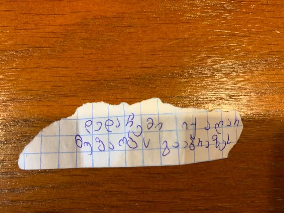 “დედაჩემი იქ აღარ მუშაობს, გააბრაზეს … არ არის ცუდი, უხარია”, – ვკითხულობთ ფოტოზე აღბეჭდილ ფურცლებზე.