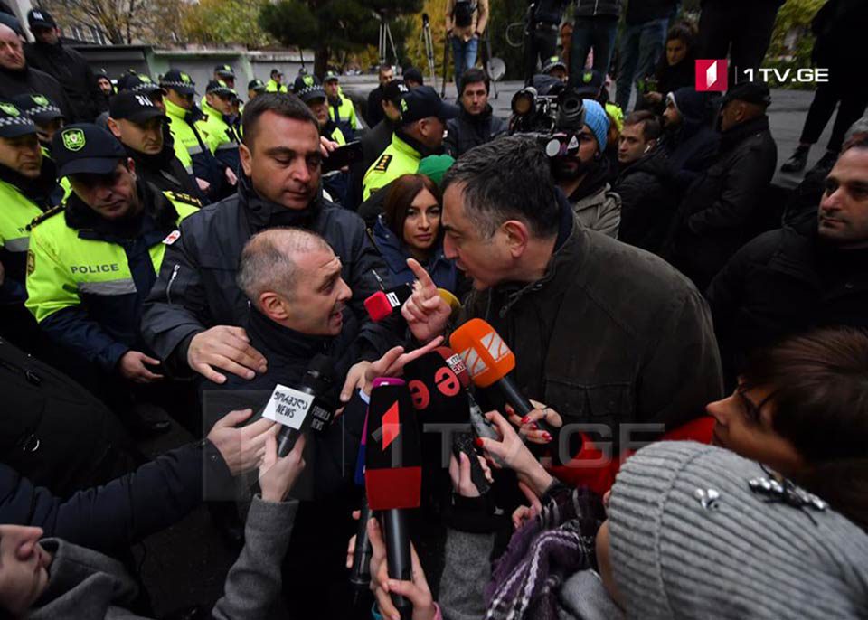 „ევროპული საქართველოს“ წევრები და მათი მხარდამჭერები მაჟორიტარული ბიუროს ოფისის კარზე ბოქლომის დადებას ცდილობდნენ.
