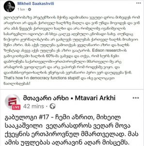 “მიშა სააკაშვილზე რაც არ უნდა თქვას გაბუმ, ის მაინც ქვეყნის ისტორიაში ყველაზე დიდ პოლიტიკურ ფიგურად და ახალი ქართული სახელმწიფოს დამფუძნებელ მამად დარჩება. და ვერც გაბუნიას გინდა სტატუსი და გინდა დამსახურებები ვერ წაართმევს უფლებას, პასუხი გასცეს ჟურნალისტის მოსაზრებას. “დაბრუნდება ერთპიროვნულ მმართველად” ნამდვილად შეფასებაა და მოიცავს იმის აღიარებას, რომ სააკაშვილი ერთპიროვნული მმართველი იყო. ეს ნამდვილად ღირს კამათად და სააკაშვილის ადგილზე მეც ჩავთვლიდი, რომ მკვახე პასუხს იმსახურებს.