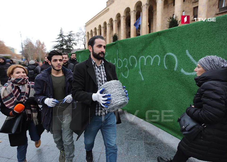პარლამენტის წინ თბილისის მერიის მიერ დამონტაჯებულ ღობეს მავთულხლართი სამოქალაქო მოძრაობა “გაბედეს” აქტივისტებმა შემოავლეს.