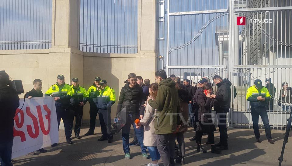 აქციის მონაწილეები ცერემონიების სასახლის ჭიშკარზე ბანერის გაკვრას ცდილობდნენ, რისი საშუალებაც მათ პოლიციამ არ მისცა.