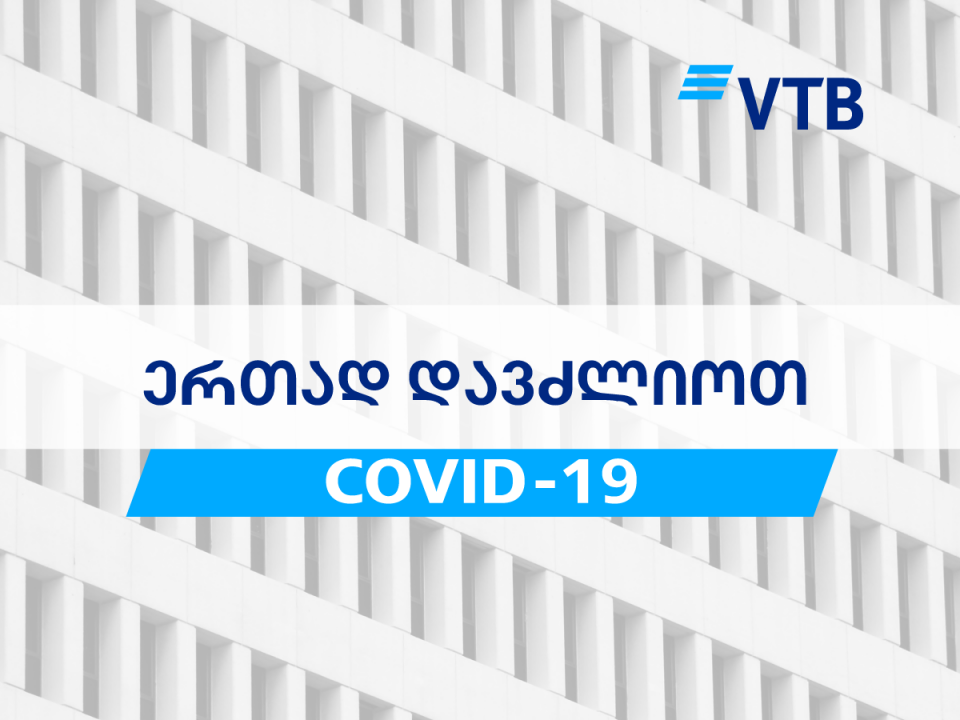 “ვითიბი” ბანკი, COVID 19-ის წინააღმდეგ ბრძოლის მხარდასაჭერად, საწყის ეტაპზე 200 000 ლარს გამოყოფს, რომელიც მიმართული იქნება იმ გამოწვევების გადასალახად, რის წინაშეც ახლა მთელი ქვეყანა დგას.