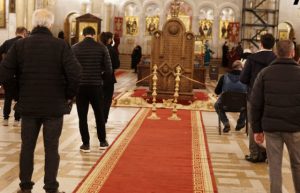 სამების საკათედრო ტაძარში სააღდგომო ლიტანიობა 23:00 საათზე დაიწყება. ტაძარში ამ დროისთვის მრევლის შედარებით მცირე ნაწილია მისული.
