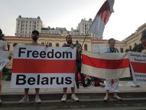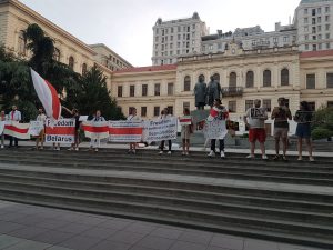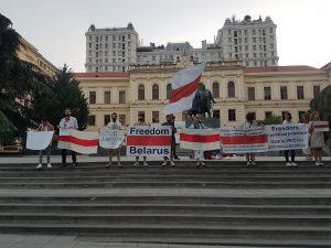 თავისუფლების მოედანზე, სამოქალაქო აქტივისტებმა ბელარუსი ხალხის მხარდასაჭერად აქცია გამართეს.