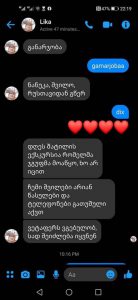 ” გამარჯობა, ნანუკა შვილო, რუსთავიდან გწერ. დღეს შატილის ტურის ექსკურსია რომელმა ჯგუფმა მოაწყო ხომ არ იცით? ჩემი შვილები არიან წასულები და ტელეფონები გათიშული აქვთ, ვერაფერს ვგებულობ, სად შეიძლება იყვნენ” – წერს ქალბატონი სავარაუდოდ ტუროპერატორს.