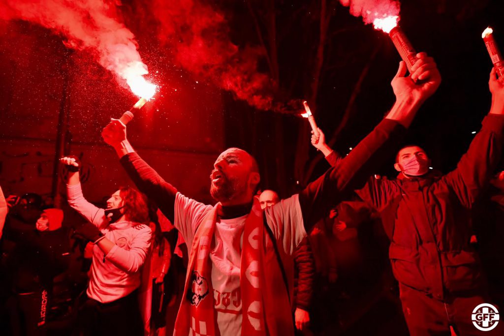 „დინამო არენაზე“ საქართველოს ეროვნულ საფეხბურთო ნაკრებსა და ჩრდილოეთ მაკედონიას შორის შეხვედრის დაწყებამდე, საქართველოს ნაკრებს ქომაგები ტაშითა და შეძახილებით დახვდნენ.