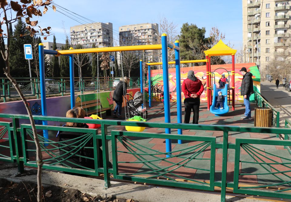 სამუშაოების შედეგად, განთავსდა ბავშვთა გასართობი ატრაქციონები, სკამები და ნაგვის ურნები. ტერიტორია უსაფრთხოების მოაჯირებით შემოიღობა და მოხდა მიწის შეტანა. ამასთან, მოეწყო ბილიკები და გრუნტის დამჭერი კედელი, რომელიც მოიხატა.