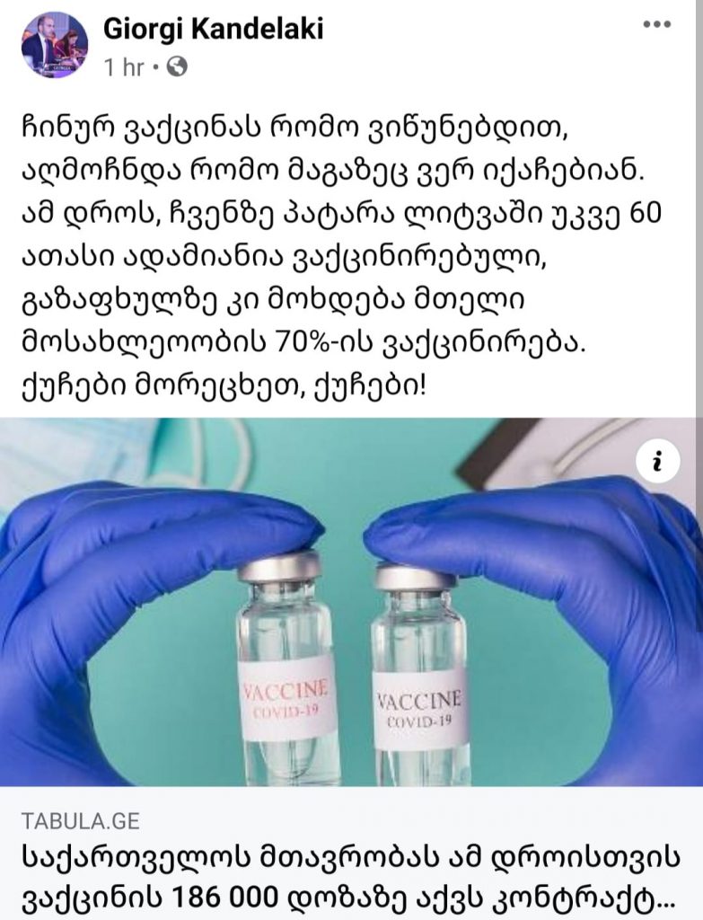 აბაშიძე აღნიშნულ პოსტთან ერთად ფოტოსქრინსაც აქვეყნებს.