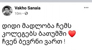 “დიდი მადლობა ჩემს კოლეგებს ბათუმში. ჩვენ ბევრნი ვართ”, – წერს ჟურნალისტი ვახო სანაია სოციალურ ქსელში.