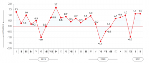 ყოველთვიური ინფლაციის დონე პერიოდების მიხედვით ასე გამოიყურება:
