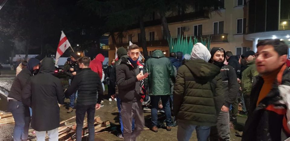 გადაკეტილია გზის ცენტრალური ნაწილი. ადგილობრივებმა სიმბოლურად კოცონიც დაანთეს.