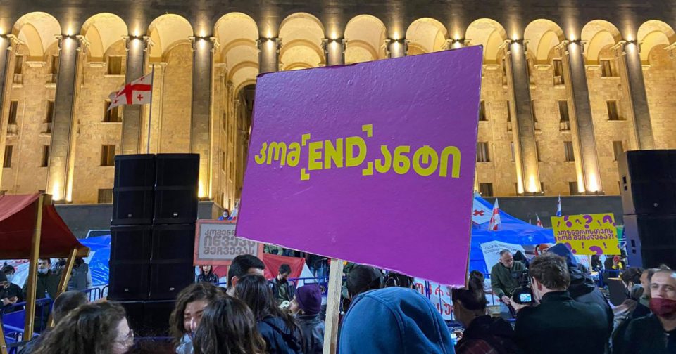 მიუხედავად იმისა, რომ 21:00 საათი უკვე შესრულდა, თბილისში, პარლამენტის შენობის წინ აქცია კვლავ მიმდინარეობს და მომიტინგეები კომენდანტის საათს არღვევენ.