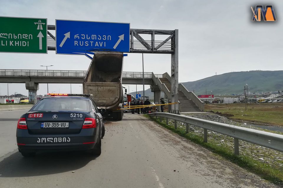 სატვირთო მანქანა რუსთავის გზაზე ხიდს შეეჯახა. დაშავებულია მძღლი, რომელიც გადაყვანილია კლინიკა რუსთავში.