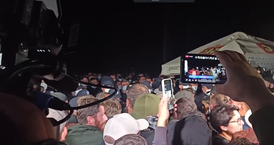 სოფელ გუმათში, სადაც ნამოხვანჰესის საწინააღმდეგო აქცია იმართება, ხმაურია. აქციის მონაწილეები რკინის ჯებირებზე ხელებს ურტყამენ. რიონის მცველები სოფელ ნამახვანის მიმართულებით გზის გახსნას ითხოვენ და სკანდირებენ “გაგვიშვით”.