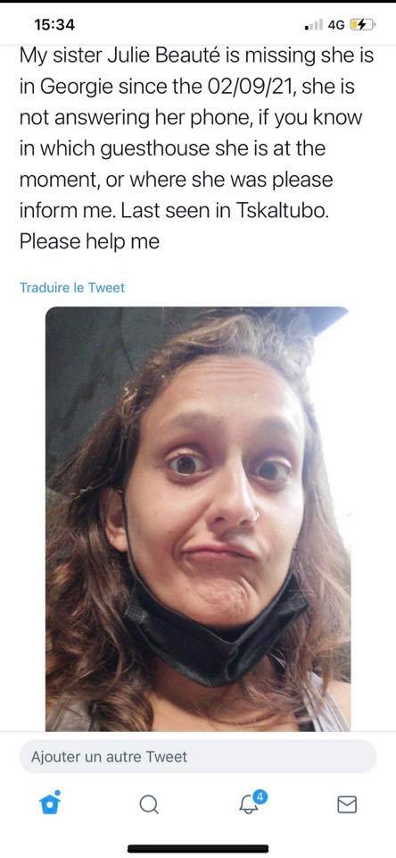 როგორც ირკვევა, ახალგაზრდა ბოლოს წყალტუბოში ნახეს. საქართველოში ტურისტი 2 სექტემბრიდან იმყოფება. ოჯახის წევრების ინფორმაციით, ახალგაზრდა არ პასუხობს სატელეფონო ზარებს. ახლობლები დახმარებას ითხოვენ.