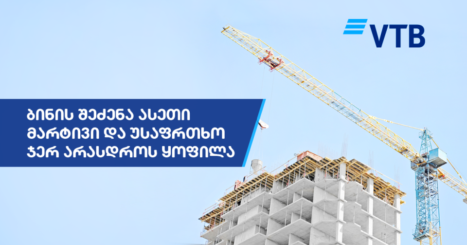 უკვე დღეიდან, მშენებარე ბინის შესაძენად გადახდილი თანხის შესაძლო დაკარგვით გამოწვეულ ზარალს, ვითიბი ბანკი აანაზღაურებს.