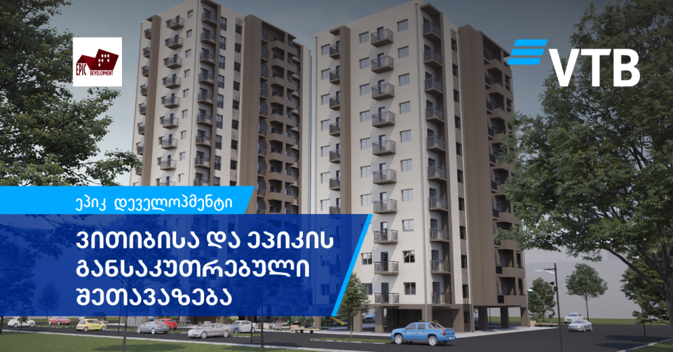დღეიდან, ნებისმიერი პირი, ვითიბის გამარტივებული იპოთეკური სესხით, შეძლებს შეიძინოს ბინა ეპიკ დეველოპმენტში, განსაკუთრებულ ფასად – კვ. მ. 580$-დან.