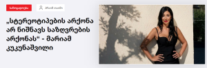 ისეთი ფრაზებით, რაც “პრაიმთაიმმა” ჩემი სახელით დაწერა, მტრობის ძალიან ძლიერი გრძნობა ჩნდება ქალებს შორის, რომლებიც მამაკაცთა მიერ დომინირებულ სივრცეში უკვე ისედაც უმცირესობაში არიან. მტრობის ეს გრძნობა წახალისებულია პატრიარქალური გარემოს მიერ „ჯანსაღი კონკურენციის“ და „მიღწევის“ სამოსის საფარ ქვეშ , მაგრამ როდესაც მედია და ამ შემთხვევაში “პრაიმ თაიმი”, რომელიც უნდა იბრძოდეს ჯანსაღი ღირებულებების სადარაჯოზე, იგონებს მიზოგინიურ ფრაზებს და ქალებს ერთმანეთს აჯიბრებს და ამცირებინებს, ან უკიდურეს უვიცობასთან გვაქვს საქმე, ან ქალების წინაარმდეგ განხორციელებულ უკიდურეს ბოროტებასთან ან იაფასიან ვაჭრუკანებთან, რომლებსაც რეკლამაში გადახდილი ფულის იქით აღარაფერი აინტერესებთ.