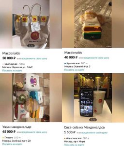 მას შემდეგ, რაც McDonald’s-მა განაცხადა, რომ რუსეთში ყველა საკვებ ობიექტს ხურავს, პლატფორმაზე Avito, რომელიც საცალო გაყიდვებისთვისთვის არის განკუთვნილი, რესტორნის პროდუქციის გადამყიდველები გამოჩდნენ. ისინი წინასწარ ნაყიდ ბურგერებს, კარტოფილ ფრის, ქათმის ნაგეტსებს და “მაკდონალდსის” სხვა დასახელების საკვებს ყიდიან. ფასები 50 000 რუბლს (1,266 ლარი) აღწევს.