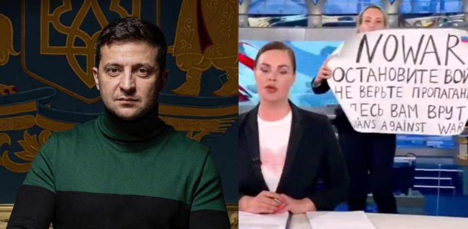 “მადლობელი ვარ იმ რუსების, ვინც არ წყვეტს სიმართლის გადმოცემას. მათ, ვინც ებრძვის დეზინფორმაციას და ეუბნება სიმართლეს, რეალურ ფაქტებს მეგობრებსა და ახლობლებს. და პირადად ქალის, რომელიც ომის საწინააღმდეგო პლაკატით შევიდა “პირველი არხის” სტუდიაში. ვისაც არ ეშინია პროტესტის. სანამ თქვენი ქვეყანა მთლიანად არ ჩაიკეტა მთელი მსოფლიოსგან და ძალიან დიდ ჩრდილოეთ კორეად გადაიქცა , თქვენ უნდა იბრძოლოთ. თქვენ არ უნდა დაკარგოთ თქვენი შანსი”, – განაცხადა ზელენსკიმ.