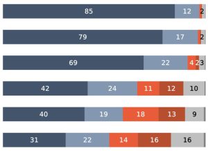 უკრაინის მიმართ - მოსახლეობის უმრავლესობა მხარს უჭერს უკრაინის მიმართ მხარდაჭერის ყველა ფორმას, რაც გამოკითხვაში იყო დასახელებული