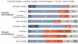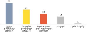 39 % თვლის, რომ საქართველოს მთავრობა რუსეთისთვის დაწესებულ ყველა სანქციას უნდა შეუერთდეს.