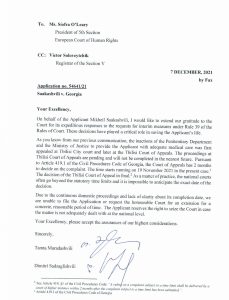 ცნობისთვის, საქართველოს იუსტიციის სამინისტრომ გაავრცელა ინფორმაცია, რომ სტრასბურგის სასამართლომ მიხეილ სააკაშვილის საჩივარი პენიტენციურ სისტემაში მკურნალობისა და მოპყრობის საკითხებთან დაკავშირებით განსახილველ საქმეთა სიიდან ამორიცხა.
