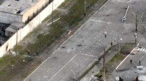 ასთან, მარიუპოლის მერის მრჩეველი, ლეტრ ანდრიუშენკო ავრცელებს კადრს, რომელშიც ჩანს, რომ ჯარისკაცის ფორმაში გამოწყობილი პირები ქარხანაში შეღწევას კედელზე გადაძრომით ცდილობენ.