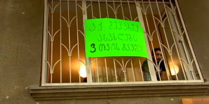 აღნიშნულ მისამართზე, ფანჯარაზე პროტესტის ნიშნად ტრაფარეტია გამოკრული წარწერით – “აქ, მევახშე ასახლებს სამი თვის ბავშვს”.