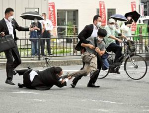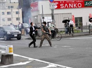 მალევე, ინტერნეტში თავმდამსხმელის დაკავების კადრები გავცელდა. არსებული ინფორმაციით, ის 41 წლის იამაგამი ტეცუია.