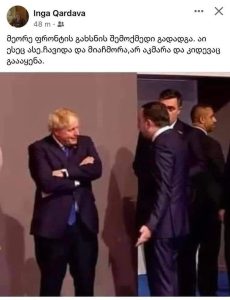 ასე ეხმაურება სენაკის საკრებულოს “ქართული ოცნების“ ფრაქციის თავმჯდომარე ირმა ქარდავა ბრიტანეთის პრემიერის, ბორის ჯონსონის გადადგომას და თან ჯონსონისა და საქართველოს პრემიერ-მინისტრ ირაკლი ღარიბაშვილის შეხვედრის ამსახველ ფოტოს აზიარებს სოციალურ ქსელში.