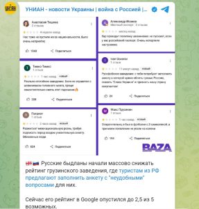 “რუსმა ნაბ***რებმა მასობრივად დაიწყეს იმ ქართული დაწესებულების რეიტინგის დაგდება, სადაც ტურისტებს რუსეთის ფედერაციიდან, შესვლის სანაცვლოდ სთავაზობენ ანკეტის შევსებას, რომელიც მათთვის არახელსაყრელი კითხვებისგან შედგება. ამ დროისთვის, ბარის რეიტინგი Google-ში შესაძლო 5-დან 2,5-მდეა ჩამოვარდნილი. ვრცელდება ინფორმაცია, რომ უკრაინელები უკვე გვერდში უდგანან ბარს – ისინი თავის მხრივ, ცდილობენ რეიტინგი აუწიონ დაწესებულებას. მოგიწოდებთ, თქვენც დაუჭიროთ მხარი ბარის პრინციპულ მეპატრონეს და ამ დაწესებულებას პოზიტიური შეფასება მისცეთ”, – ნათქვამია გამოცემის მიერ გამოქვეყნებულ ინფორმაციაში.