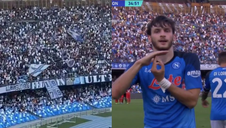 ვრცელდება ემოციური კადრები, როგორ იძახის მარადონას სახელობის სტადიონზე შეკრებილი ხალხი ხვიჩა კვარაცხელიას სახელსა და გვარს.